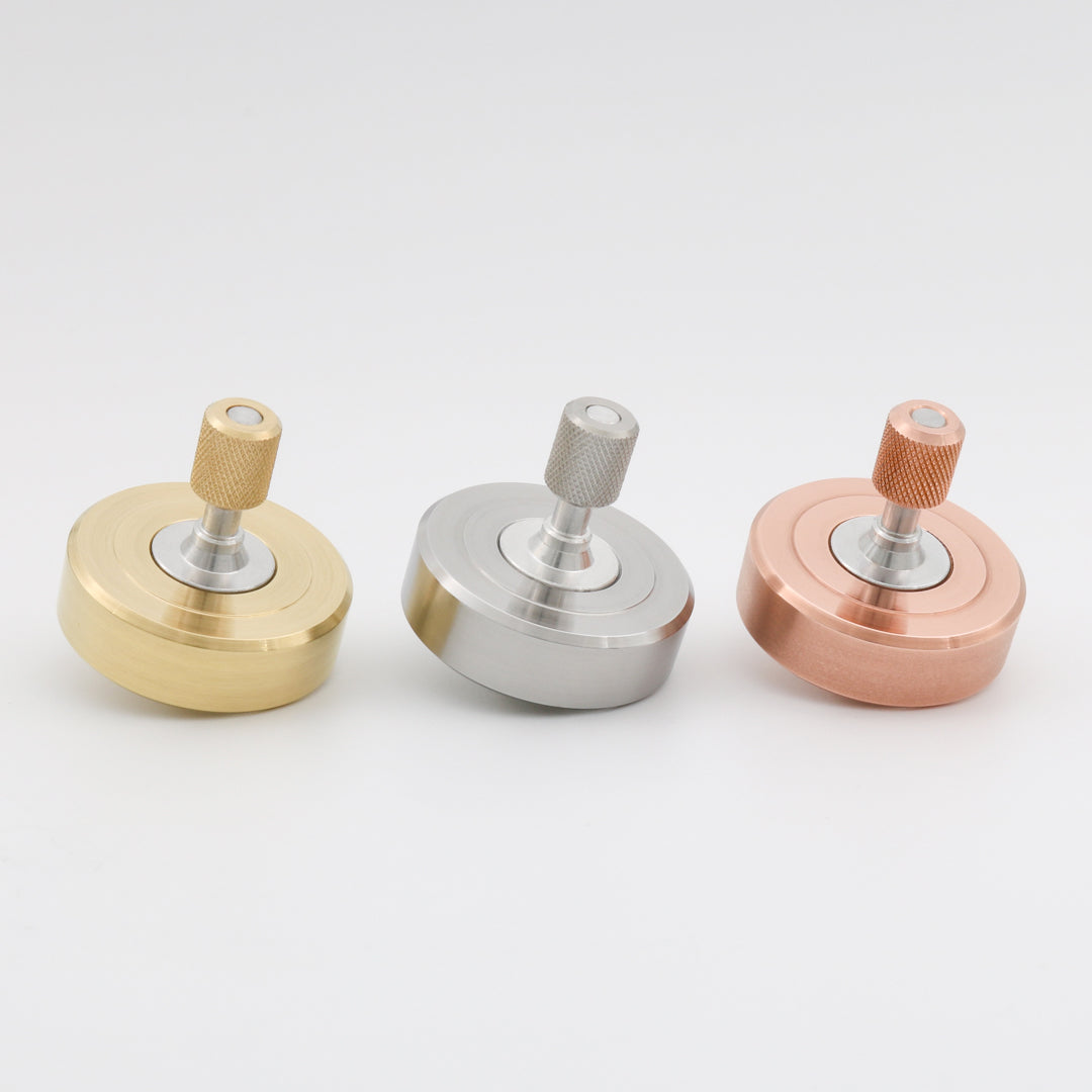 Brass strikes the perfect balance—heavier than stainless but not as weighty as copper. It provides long, steady spins.
